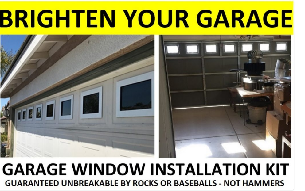 Imagine how your garage will change when you add windows to the door. This kit is available for any size door. A one car garage kit has 4 windows, a 2 car garage kit has 8, etcetera. Each window is 12 inches high and 16 inches wide. The material is tough plexiglass, the same material used for golf cart windshields!